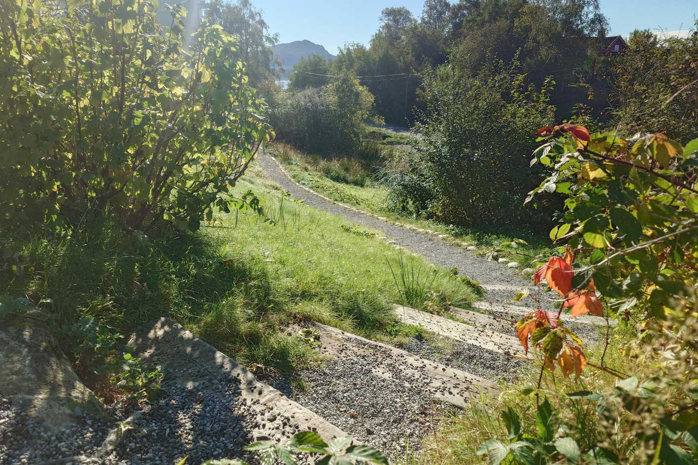 Over the course of several years, the housing association has transformed the outside area making use of the Norwegian communitiy effort called 'dugnad', where people meet for voluntary work, a mix of labour and social event, a great way to get to know your neighbours and take ownership of common areas. This 'dugnad' has paid of: The planting scheme is much more varied, there are now borders with perennials, rowan trees, fruit trees, shrubs, a staircase connecting the upper and the lower level, and a pathway along the entire area. Everyone is pleased with the changes, and I was told that there are noticably more birds and insects. What a gratifying job!!!