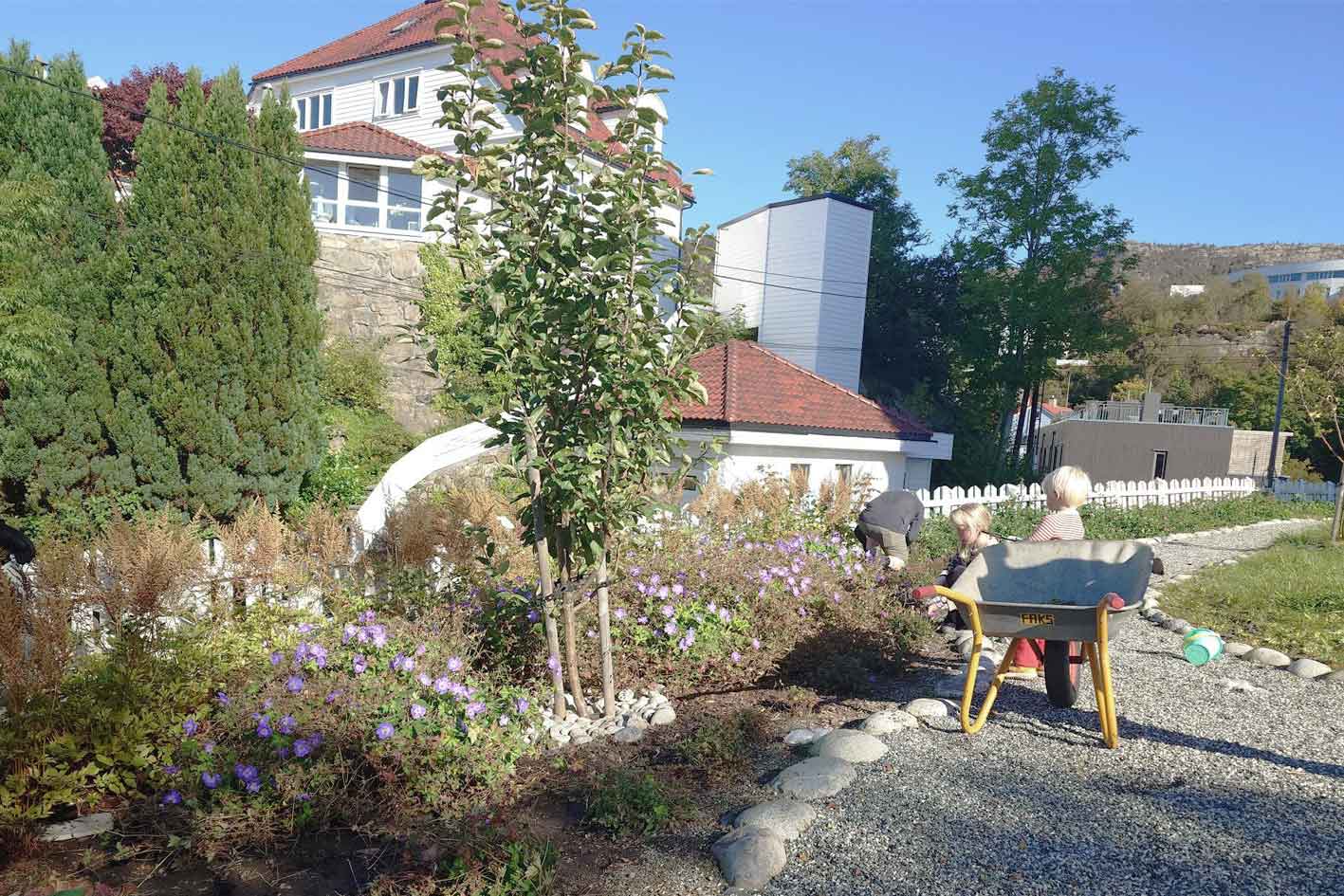 When I first visited Fagernes, a housing estate in the suburbs of Bergen, more than ten years ago, the outside area was neglected and not in use. The housing association wanted to change this and asked me for a manual and maintenance plan. I invited all inhabitants for a workshop to learn about people's ideas, wishes, and also to understand what they didn't want (which is also important!). The housing association made it clear from the beginning that they wanted to do the work themselves and not hire a contractor. Thus, I drew a master plan and planting plans, implementing their wishes (more trees, more plants to attract insects, better connections between the different areas etc). I also added a 'manual' - a DIY guidebook for the community, outlining the work sequences in regard to the seasons and the association's budget. To avoid disappointment and frustration, I took great care to divide the tasks in smaller 'portions'and explained that a garden is a never-ending-project.